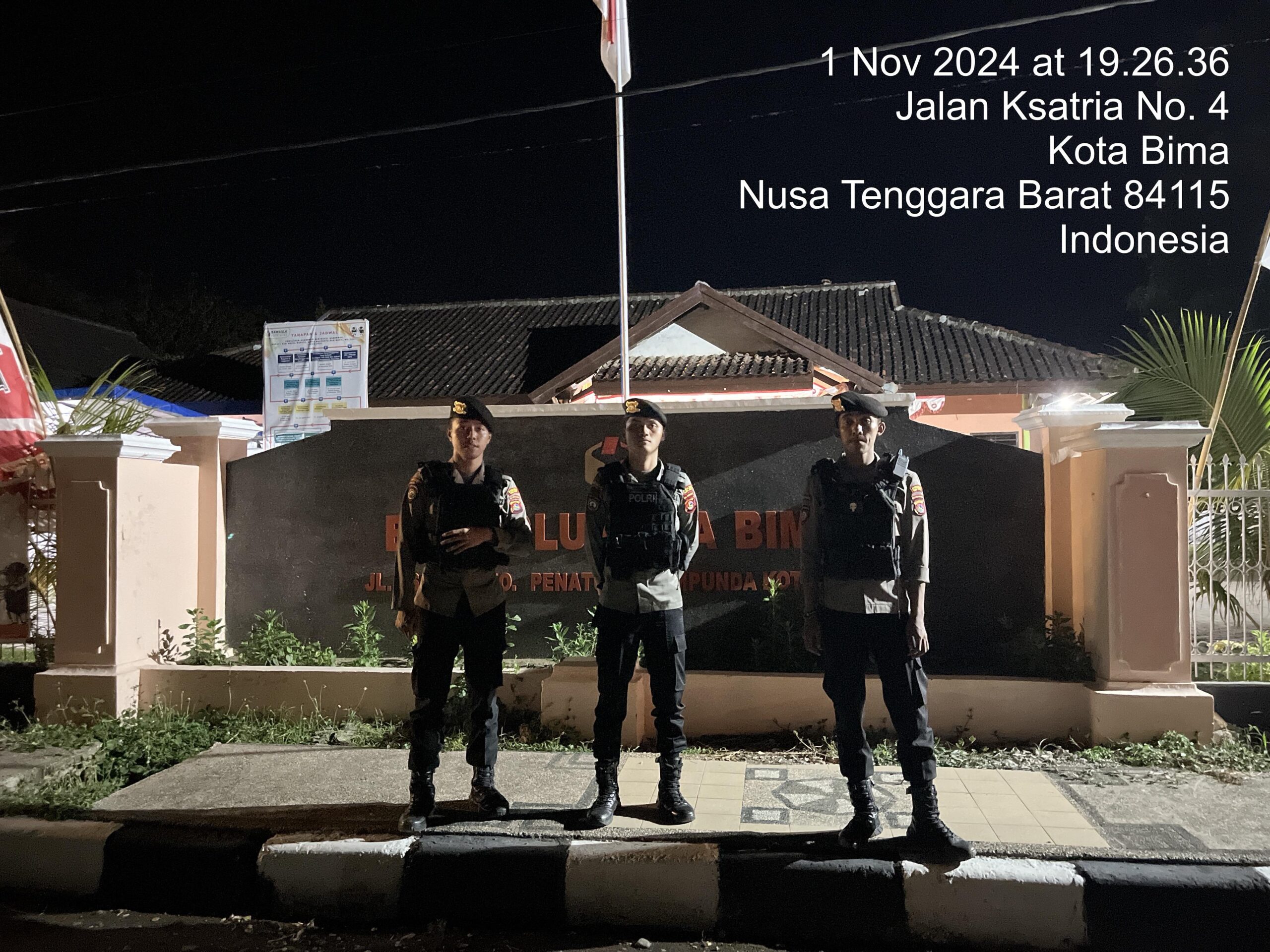 Kota Bima,NTB (4 November 2024) – Dalam upaya menjaga keamanan dan ketertiban menjelang Pilkada 2024, Polres Bima Kota Polda NTB melalui Satgas Preventif telah meningkatkan pengamanan di Kantor KPU dan Bawaslu Kota Bima yang terletak di Jl. Gajah Mada, Kelurahan Penatoi, Kota Bima. Langkah ini merupakan bagian dari upaya preventif guna menjaga situasi tetap kondusif selama tahapan kampanye Pilkada berlangsung.