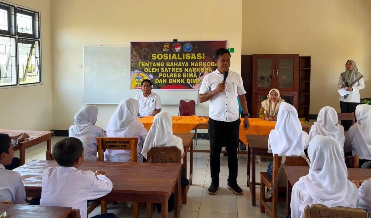 Bima, NTB (08/11) – Bertempat di SMPN 05 Palibelo Desa Panda Kecamatan Palibelo Kabupaten Bima Satuan Reserse Narkoba Polres Bima Polda NTB melaksanakan Sosialisasi Pencegahan Narkoba dan Pembagian makanan gratis dan bergizi.