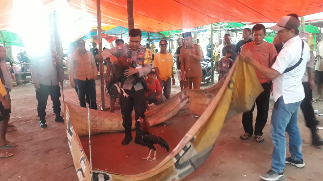 Dalam kegiatan itu petugas membongkar tenda dan menyita alat peraga judi dan mengamankan dua ekor ayam aduan serta menghimbau kepada warga sekitar agar tidak lagi melakukan hal serupa dalam bentuk apapun.