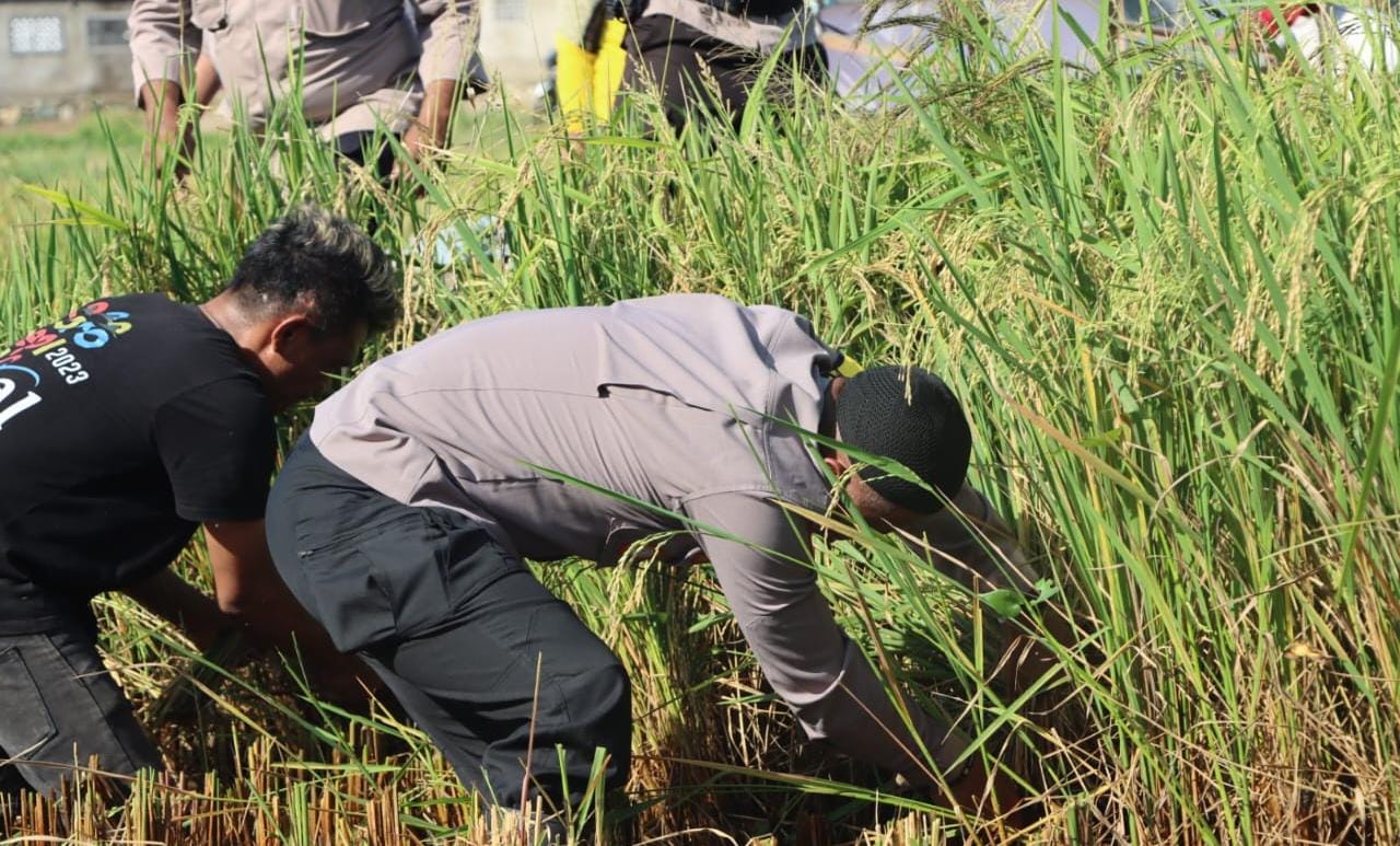 Panen padi di lahan seluas 2 Hektar milik Kepolisian Sektor Woha Polri berkolaborasi warga untuk memastikan kelancaran dan keberhasilan panen tersebut