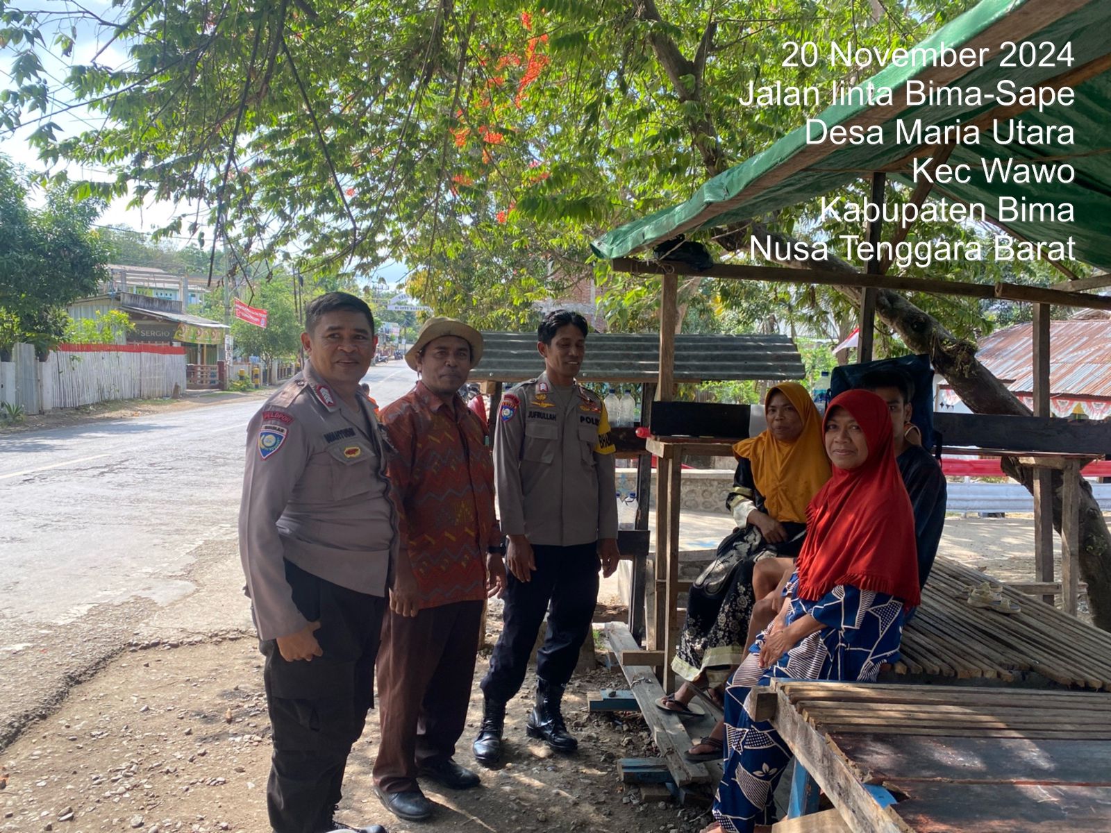 Bima, NTB (21 November 2024) – Dalam rangka menjaga situasi keamanan dan ketertiban masyarakat (Kamtibmas) menjelang tahapan pungut hitung Pemilihan Kepala Daerah (Pilkada) Serentak Tahun 2024, Polsek Wawo yang tergabung dalam Operasi “Mantap Praja Rinjani 2024” melaksanakan patroli dan memberikan imbauan Kamtibmas di Desa Maria Utara, Kecamatan Wawo, Kabupaten Bima, pada Rabu pagi (20/11/2024).
