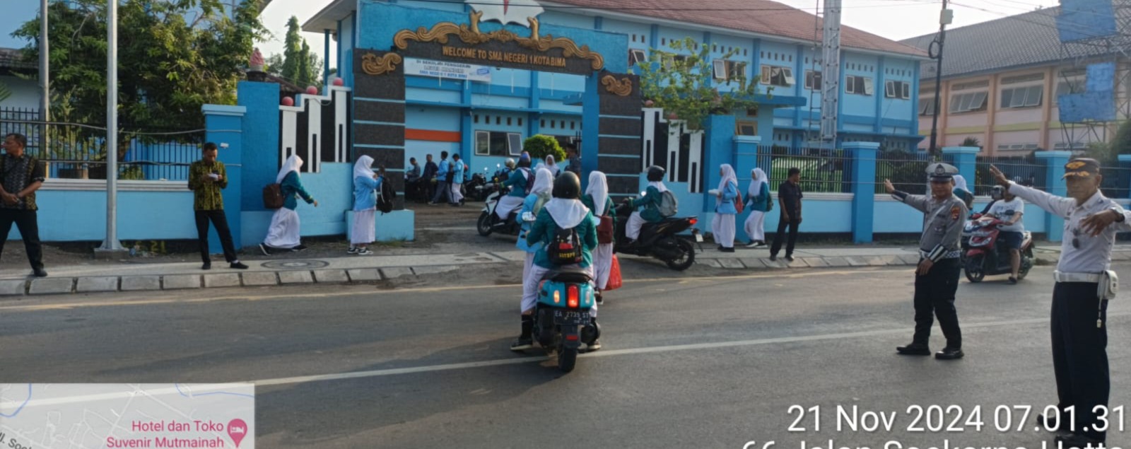 Kota Bima, NTB (21 November 2024) – Personel Satuan Lalu Lintas (Satlantas) Polres Bima Kota menunjukkan kepeduliannya terhadap keselamatan pelajar dengan melaksanakan pengaturan arus lalu lintas (Gatur) pagi sekaligus membantu anak-anak sekolah menyeberang jalan. Kegiatan ini berlangsung di Jalan Soekarno Hatta, Kota Bima, pada Kamis pagi.