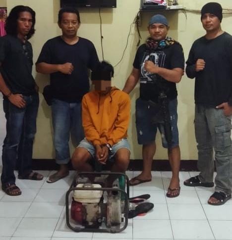 Terduga yang berinisial AR (L/27) warga desa Ngali ini di buru sejak bulan Maret atas dugaan melakukan tindak pidana pencurian mesin air milik korban berinisial NH yang juga warga Desa setempat.