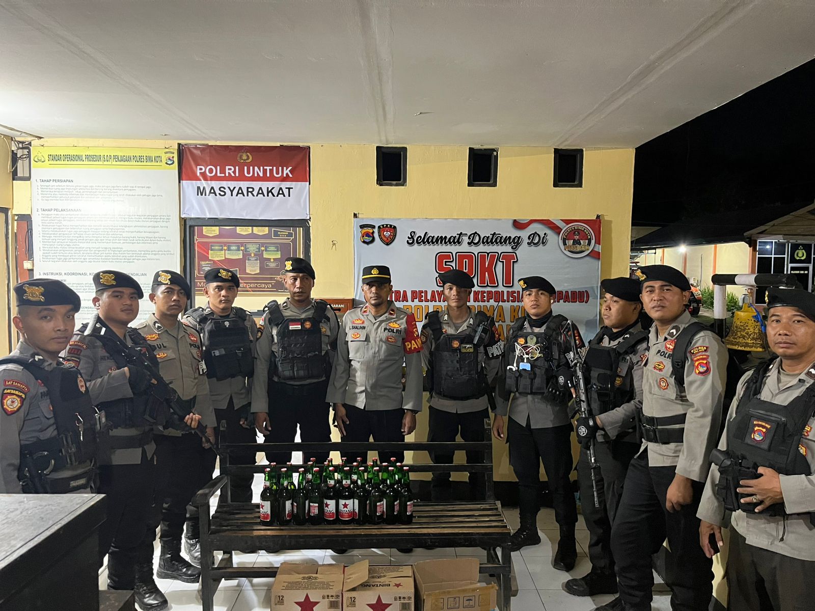 Kota Bima, NTB (05 September 2025) – Untuk menjaga keamanan dan ketertiban masyarakat (kamtibmas) di akhir pekan, Polres Bima Kota melalui Piket Pawas bersama anggota Sat Samapta melaksanakan razia minuman keras (miras) di sejumlah café dan tempat hiburan malam di wilayah Kota Bima, Sabtu (5/10/2025) dini hari sekitar pukul 00.00 WITA.