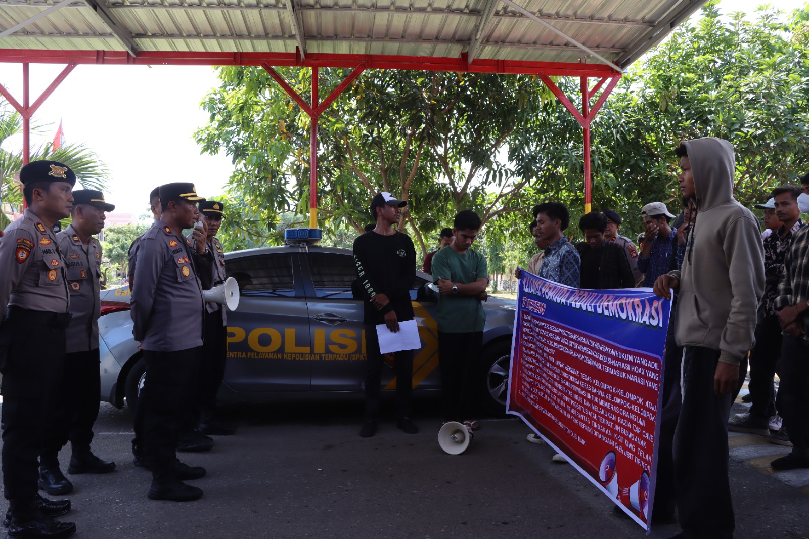 Pada hari Jumat, 10 Oktober 2025, sekitar pukul 09.30 WITA, Aliansi Pemuda Peduli Demokrasi menggelar aksi unjuk rasa di halaman Mapolres Bima Kota. Aksi yang diikuti sekitar 25 orang massa ini dipimpin oleh Kurniawan Putra selaku koordinator lapangan.