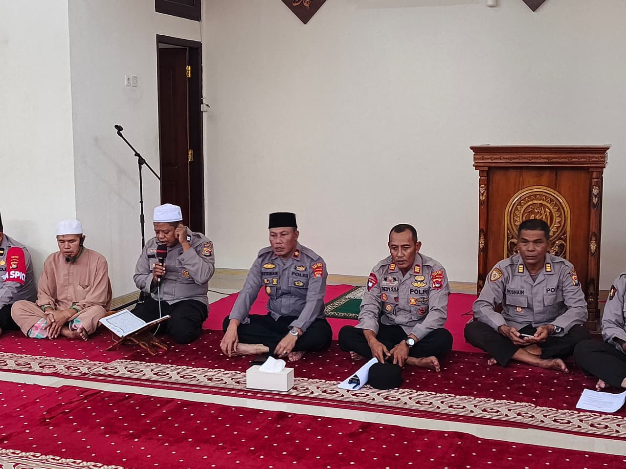 “Pada pukul 08.30 Wita, seluruh personel Polres Bima Kota yang beragama Islam memasuki Masjid Jabal Qubis. Kegiatan ini dipimpin langsung oleh Wakapolres Bima Kota Kompol Herman, S.H., serta diikuti oleh para Pejabat Utama (PJU), perwira, bintara, dan ASN Polres Bima Kota,” jelas Kasi Humas.